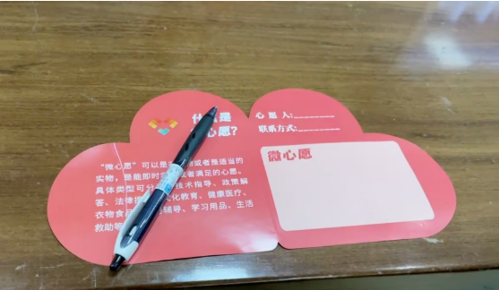 活動(dòng)現(xiàn)場(chǎng),“紅馬甲”們還遞上了一張?zhí)厥獾目ㄆ脑缚?,無論是工作上還是生活里的小愿望都可以被寫在上面。