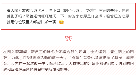 大家寫下的心愿卡和建議都已被查收,吸管妞希望大家以后遇到什么困難都可以積極反饋,“雙童”會(huì)盡力去解決每一件事,讓大家感受到“家”的溫暖~