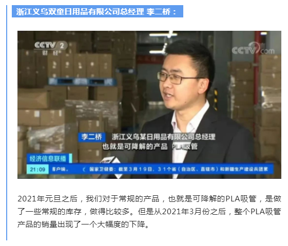 2021年元旦之后,我們對于常規(guī)的產(chǎn)品,也就是可降解的PLA吸管,是做了一些常規(guī)的庫存,做得比較多。但是從2021年3月份之后,整個PLA吸管產(chǎn)品的銷量出現(xiàn)了一個大幅度的下降。
