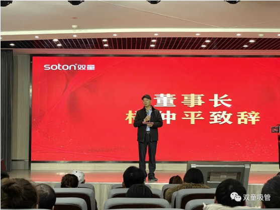 ▲ 表彰慶祝大會(huì)上“雙童”董事長樓仲平發(fā)言