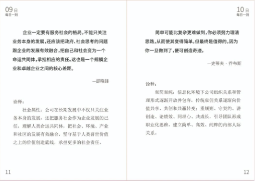 每天早上八點是“雙童”的晨讀環(huán)節(jié),“雙童”所有員工都會捧著一本小冊子進行誦讀。其實這本書就是“雙童”的企業(yè)文化叢書——《每日一則》。