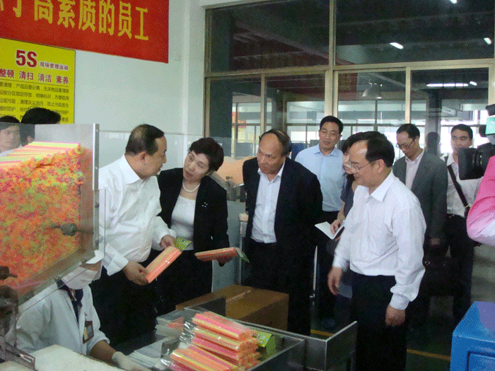 上圖:楊志明副部長一行在吸管生產車間進行調研