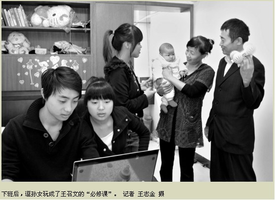 房間里,一家人都在。兒子和女兒在看電腦,妻子和兒媳在逗芯芯玩。王召文上前“搶”過孫女,親親她的臉頰,喚著她的小名,逗得小家伙咧開嘴直笑。