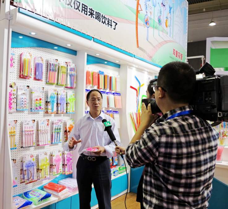 當天,還有聞風而來的包括央視、浙江衛(wèi)視、金華衛(wèi)視、義烏電視臺在內(nèi)的數(shù)家媒體將雙童的展位圍了個水泄不通。大家認真聽著董事長樓仲平講述關于一根吸管的變奏,一根簡單的吸管,通過創(chuàng)新,通過技術改造,利潤從幾分錢變到幾塊錢,究其本質(zhì),還是歸功于創(chuàng)新。創(chuàng)新吸管已經(jīng)不僅僅是用來喝飲料了,它更集趣味性、情感性、功能性于一體,小吸管窺探大世界。
