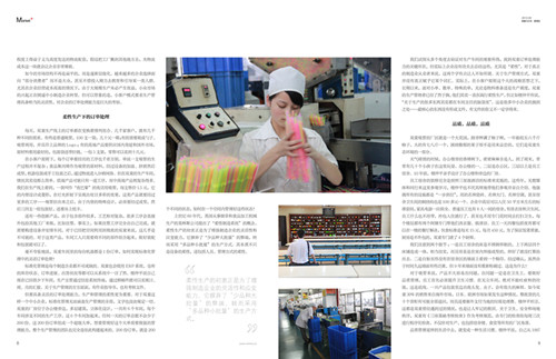 我們試圖從多個(gè)角度去驗(yàn)證對生產(chǎn)車間的觀察所得,找到訂單處理能力的關(guān)鍵所在,但實(shí)際上企業(yè)沒有功夫去總結(jié)這些,尤其是“柔性”,對于真正的制造業(yè)從業(yè)者來說,這兩個(gè)字有點(diǎn)讓人不知所謂。對于生產(chǎn)管理方式,雙童并沒有真正賦予它某個(gè)詞匯。實(shí)際上,在小客戶原則這個(gè)大的戰(zhàn)略思想之下,長期以來,面對小單、散單、特殊的單,無論是物料準(zhǔn)備還是生產(chǎn)調(diào)度,雙童的生產(chǎn)管理者已經(jīng)了然于胸,他們其實(shí)一直在踐行柔性生產(chǎn),但正如樓仲平所說,“關(guān)于生產(chǎn)的很多東西其實(shí)都在車間主任的腦子里”。這是很多中小企業(yè)的獨(dú)到之處——最核心的東西沒有形成文件,有文件的你又不一定學(xué)得來。