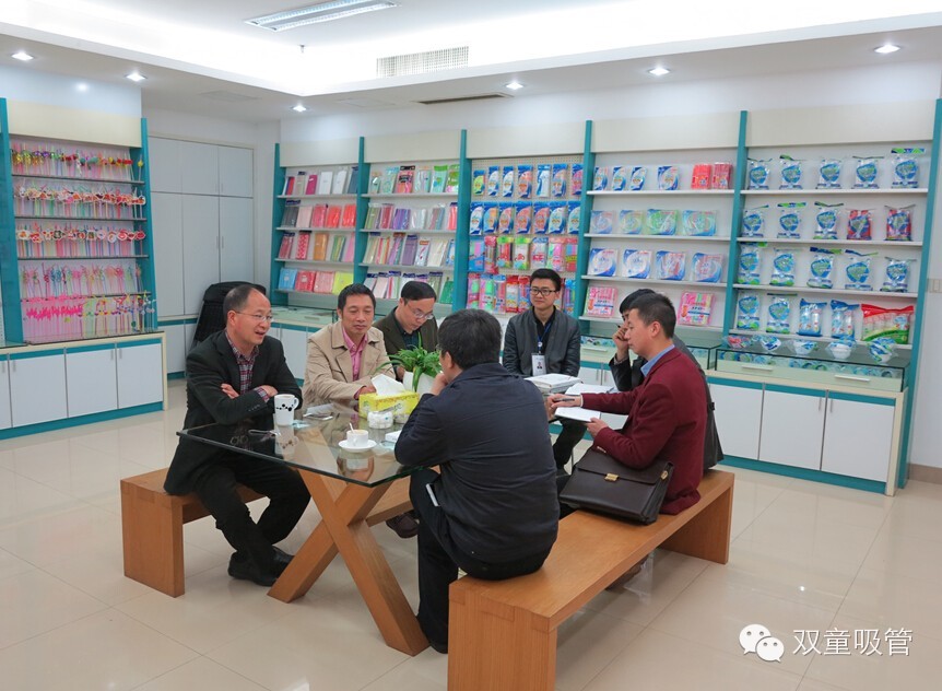 小劉記者剛走沒多久,兩批貴客像是約好了似的都來到雙童。一批是我們的義烏市紀(jì)委書記等六七位領(lǐng)導(dǎo),另一批則是二三十號阿里巴巴同學(xué)會的boss們。我們的幾位高層領(lǐng)導(dǎo)分頭行動,帶領(lǐng)著這兩支隊伍參觀雙童的節(jié)能降耗、員工寢室、產(chǎn)品樣品房……不得不說,幾位領(lǐng)導(dǎo),你們真是蠻拼的,可以去考導(dǎo)游證啦!尤其是當(dāng)家人,在“導(dǎo)游工作”結(jié)束后,搖身一變成了會議室里的“講師”,為我們的阿里巴巴同學(xué)會的boss們上了一堂精彩的《“雙童”為什么堅持只做一根吸管》課程,到今天,都還有同學(xué)來找吸管妞要昨天的課件呢!
