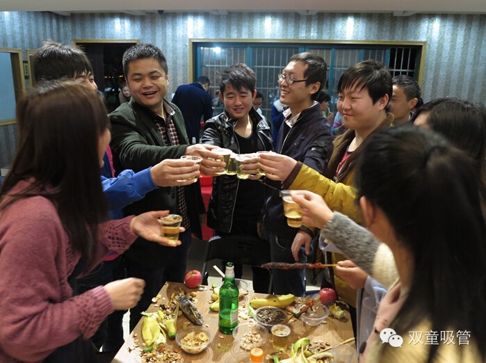 3月28日晚, 雙童吸管春節(jié)后的第一次員工生日(二、三月份)派對在九樓天臺上快樂舉行!燒烤配啤酒、點心配紅酒,瓜果配飲料,首先這吃喝上得讓壽星們滿足嘍才能有力氣參與我們精心準(zhǔn)備的各類小游戲?qū)Σ唬?/p>