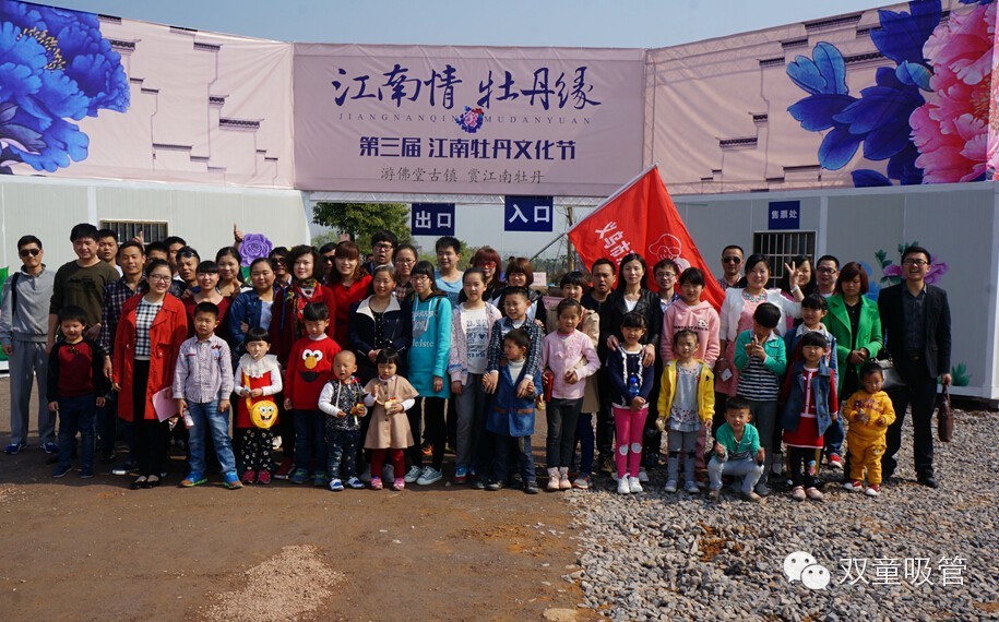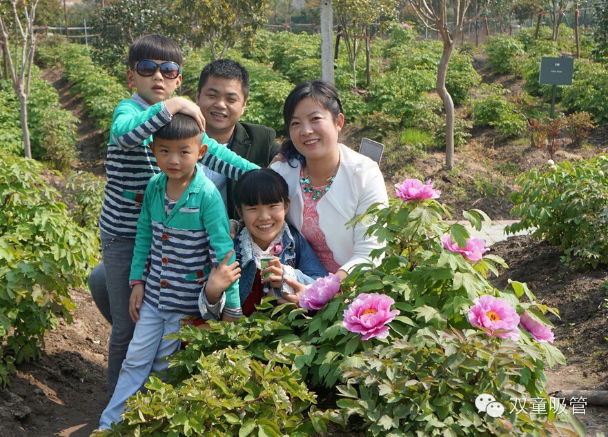 萬盛牡丹園是我們雙童春游的第一站,早就聽聞義烏佛堂有個牡丹園,牡丹花開名動商城,這次終于有機會可以一飽眼福啦!在門口急匆匆地拍了一個合照,大家伙連吸管妞免費提供的“飯票”都不要了,一溜煙全跑進去賞花了!