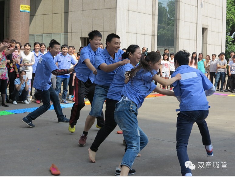 “趾壓板運(yùn)動會”、“老鷹捉小雞撕名牌” 咦?“奔跑吧兄弟來雙童吸管了? 哈哈,奔跑吧兄弟算什么?看我們的“奔跑吧雙童”全廠幾百號人一起玩,一起加油吶喊,可比他們的陣容強(qiáng)多了!雖然游戲是移植,但我們玩的更快樂!為什么?因為一家人在一起,做什么都幸福啊!