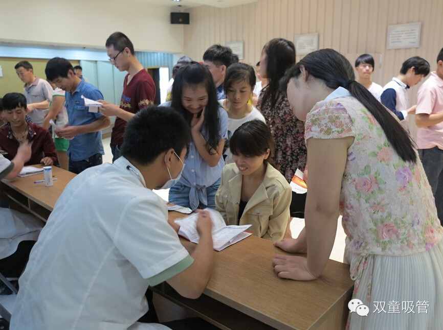 看看,這幾個(gè)妹子,在抽血項(xiàng)目前也是體現(xiàn)除了女生的嬌弱一面,怕怕的表情讓吸管君蹲守在這個(gè)項(xiàng)目邊都舍不得離開!而胸透項(xiàng)目時(shí),大家都需要輪流站在機(jī)器面前抱著機(jī)器“掃一掃”,看著也是萌萌噠!