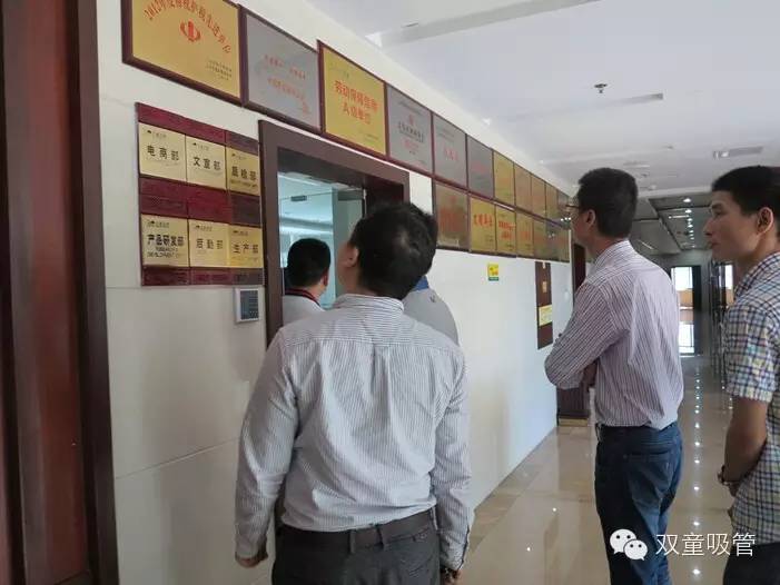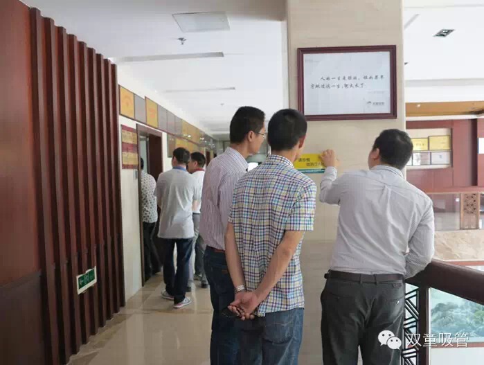 王斌董事長來到雙童就直言:我們今天是來學(xué)習(xí)的,你們做的方面我們今天可都要學(xué)去!有了這句話,后面的這些管理精英們更是提起了十二分精神,把我們雙童的各個細(xì)節(jié)都看得那叫一個仔細(xì)!文化標(biāo)語、提示標(biāo)語、消防提示語、門牌……大家都挨個摸一摸又拿著手機(jī)拍一拍,吸管妞偷偷拍了一兩張,給大家欣賞欣賞!