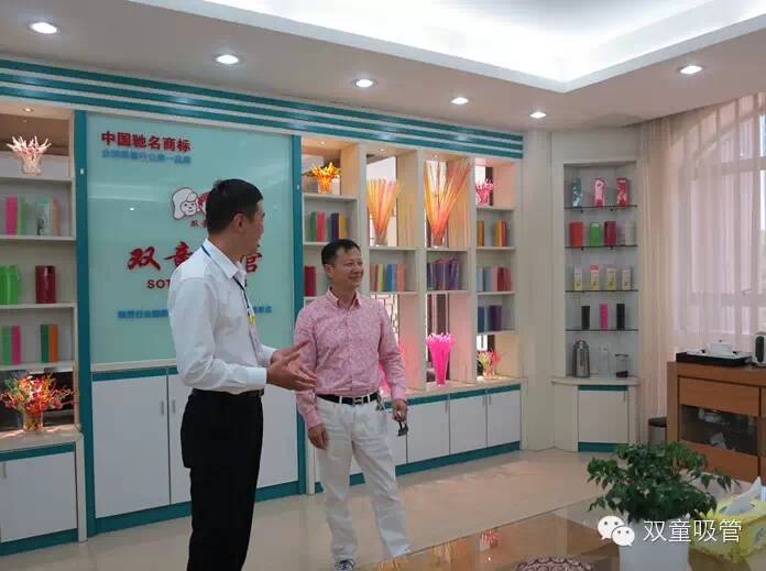 接下來,大家參觀了雙童樣品房,看來我們的王董事長對我們的創(chuàng)新吸管也是很感興趣呀!