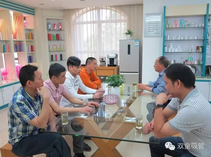 5月13日,深圳金富源表業(yè)公司的董事長劉仕威帶著4位高層領(lǐng)導(dǎo)特地打著“飛的”來到雙童拜訪交流。