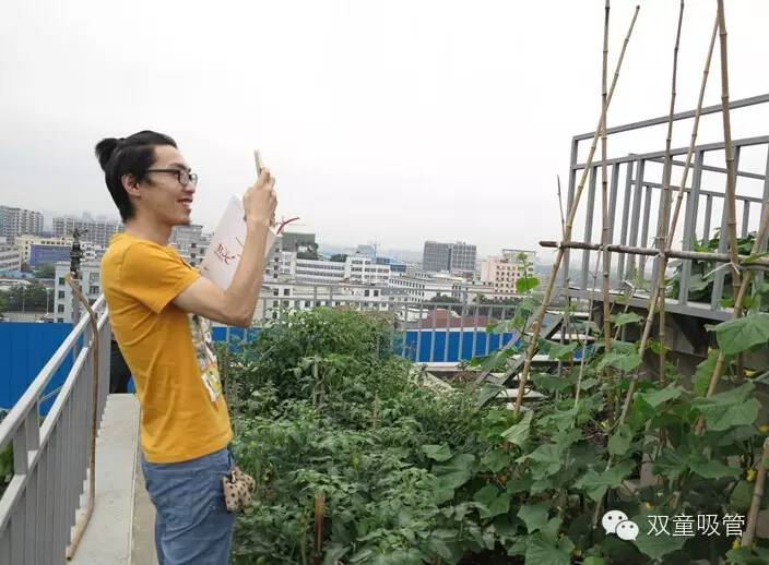 看,我們的大主持人田野在參觀九樓菜園看到這么一片原生態(tài)的“田野”也禁不住拿出手機(jī)拍幾張啦!而調(diào)皮的當(dāng)家人非要拉著田野在自己的“田野”里拍照留念。吸管妞真想對(duì)當(dāng)家人說(shuō),讓我也來(lái)合影幾張呀!