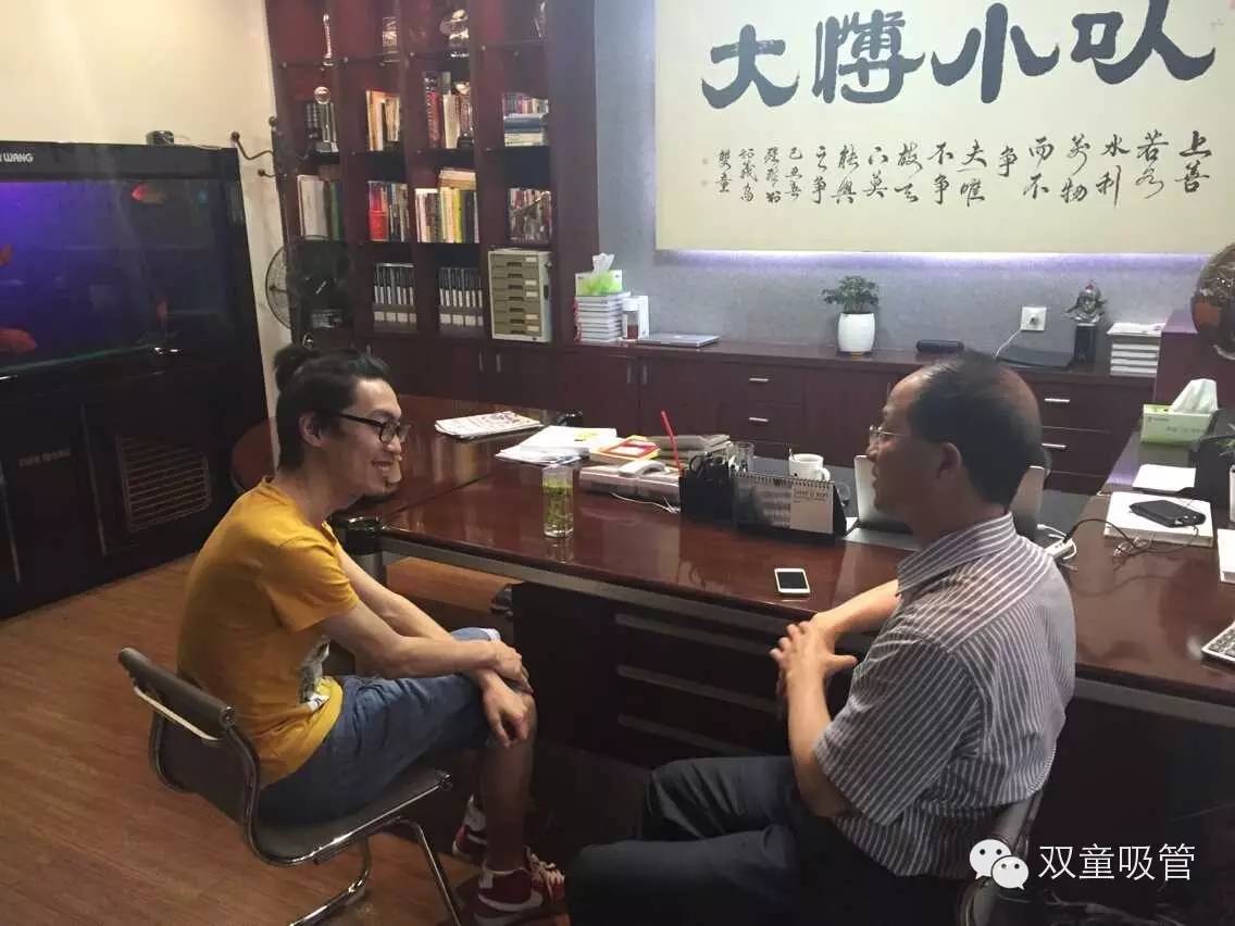 6月4日下午,義烏電臺(tái)主持人田野單槍匹馬來(lái)到雙童采訪當(dāng)家人@樓仲平 ,請(qǐng)當(dāng)家人具體詮釋他辦公室里有名的四個(gè)大字“以小博大”的深層涵義。作為粉絲的吸管妞自然是“偷偷摸摸”地摸進(jìn)了樓總辦公室,希望能夠和偶像多多接觸啦!