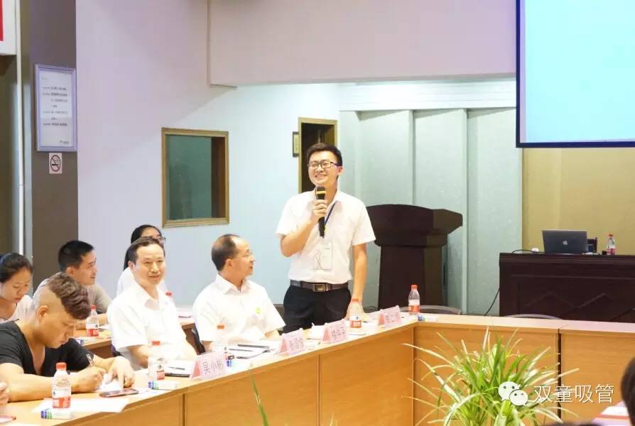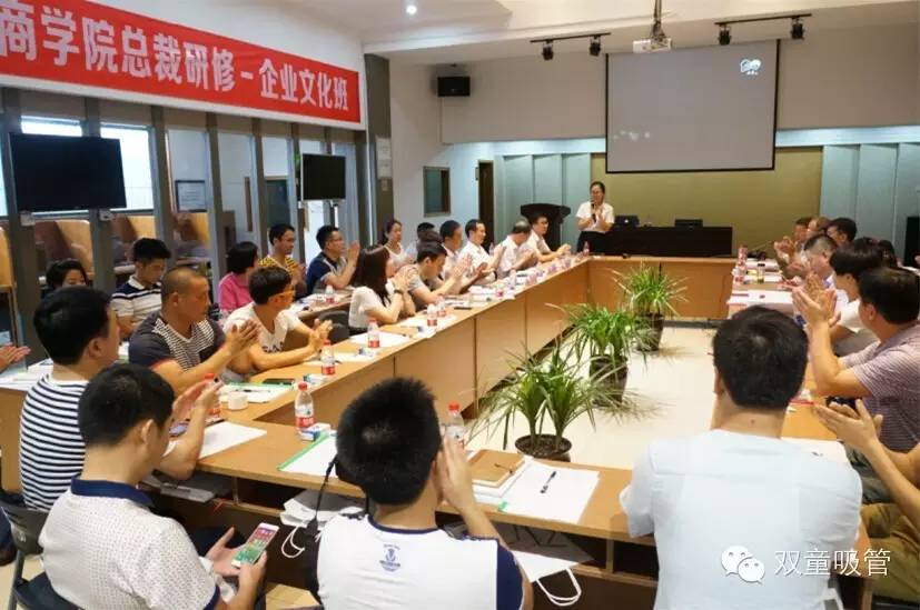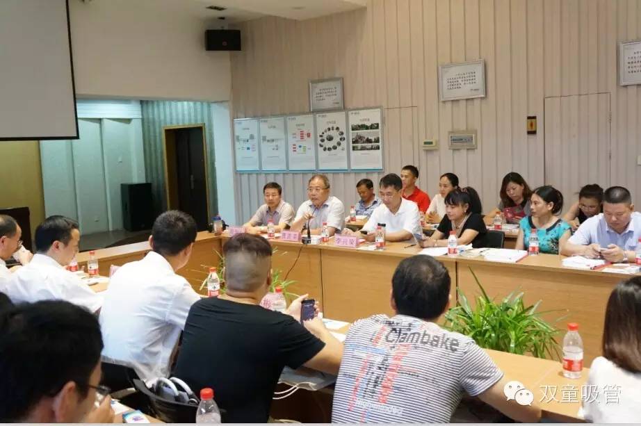 在參觀完畢后,所有學員又重新回到了九樓閣,參加接下來的重頭戲——企業(yè)交流會。會議一開始,由義烏市企業(yè)聯(lián)合會會長賈貴南發(fā)表講話。說到賈會長,他和雙童的淵源可深的很呢!早在2006年,當時義烏市經(jīng)發(fā)局的賈局長陪同國家中小企業(yè)司的顧司長來雙童參觀,顧司長參觀后感慨:我終于找到了夢寐以求的企業(yè)!從此之后各個社會媒體都在政府的推動下開始關(guān)注雙童吸管。所以說,沒有賈局的推薦就沒有今天的雙童吸管。吸管妞代表所有雙童人要向賈局表達最深切的謝意!