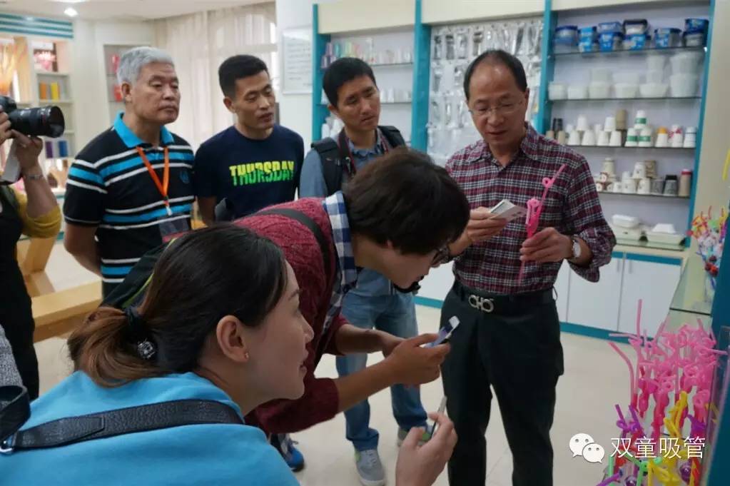接著,網(wǎng)絡(luò)媒體團的一行眾人先是來到了位于綜合樓二樓的創(chuàng)新吸管樣品室,由樓總向眾人介紹我們的一系列創(chuàng)新吸管產(chǎn)品。一款款創(chuàng)意十足、富有童真的創(chuàng)新吸管引起了大家的強烈關(guān)注,尤其是幾位女記者們,簡直是愛不釋手!而當看到我們的可降解吸管時,則紛紛點頭贊許雙童的環(huán)保理念。