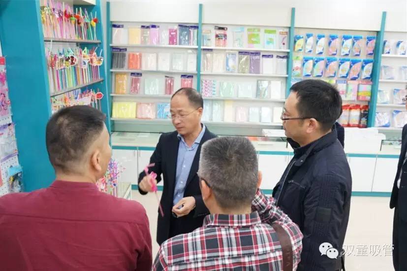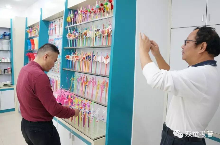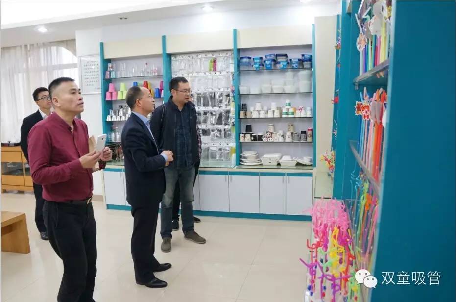 來(lái)者即是客,當(dāng)家人樓總和二當(dāng)家李總自然是熱情接待,將幾位領(lǐng)導(dǎo)領(lǐng)到了我們的樣品房。看到琳瑯滿目的各色創(chuàng)新吸管,當(dāng)家人還沒(méi)開(kāi)始介紹呢,幾位領(lǐng)導(dǎo)就都拿著手機(jī)拍上了??磥?lái)我們雙童的創(chuàng)新吸管真是受歡迎!