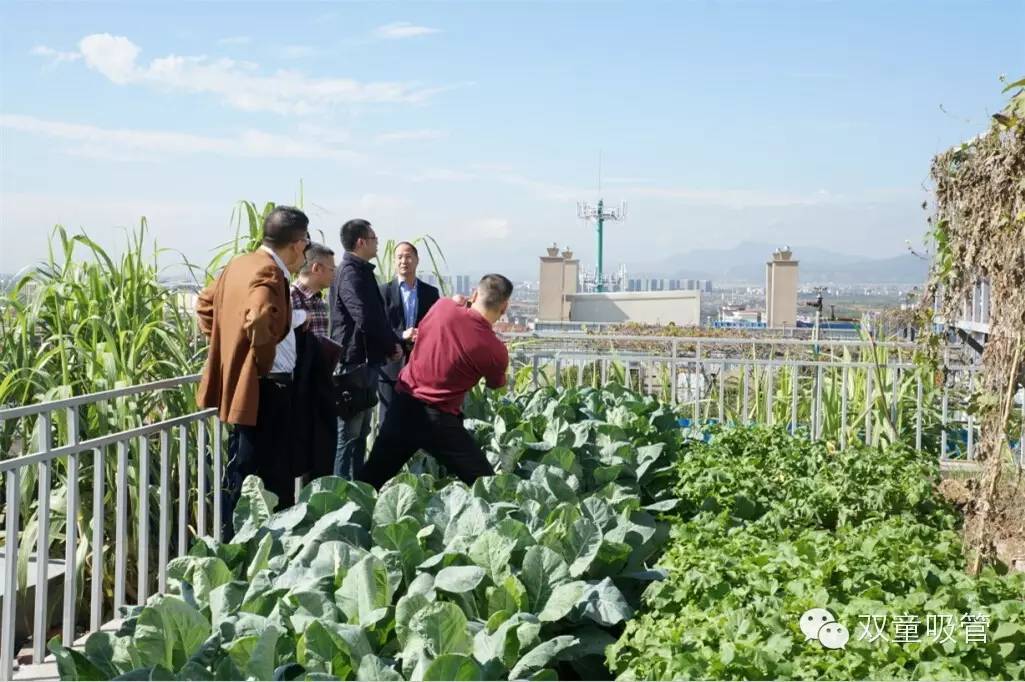 領(lǐng)導(dǎo)們?cè)诋?dāng)家人樓總的帶領(lǐng)下,也參觀了我們的董事長(zhǎng)辦公室、九樓閣活動(dòng)室和空中菜園。昨天難得是個(gè)好天氣,經(jīng)過(guò)前幾天的下雨,我們九樓的蔬菜們長(zhǎng)勢(shì)也是格外喜人,都是嫩綠一片。領(lǐng)導(dǎo)們邊拍照邊打趣田處長(zhǎng),你看你姓田,連參觀的企業(yè)都種田呢!