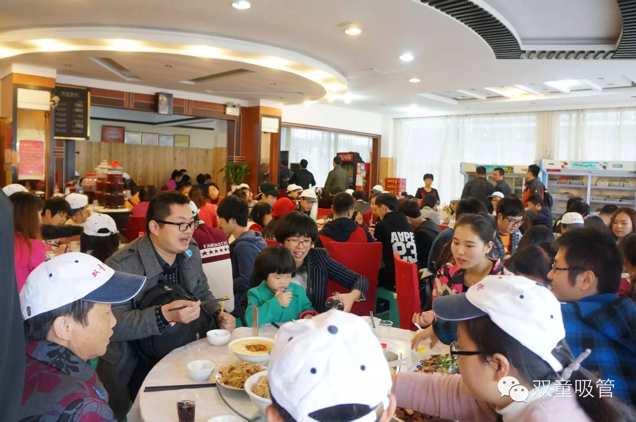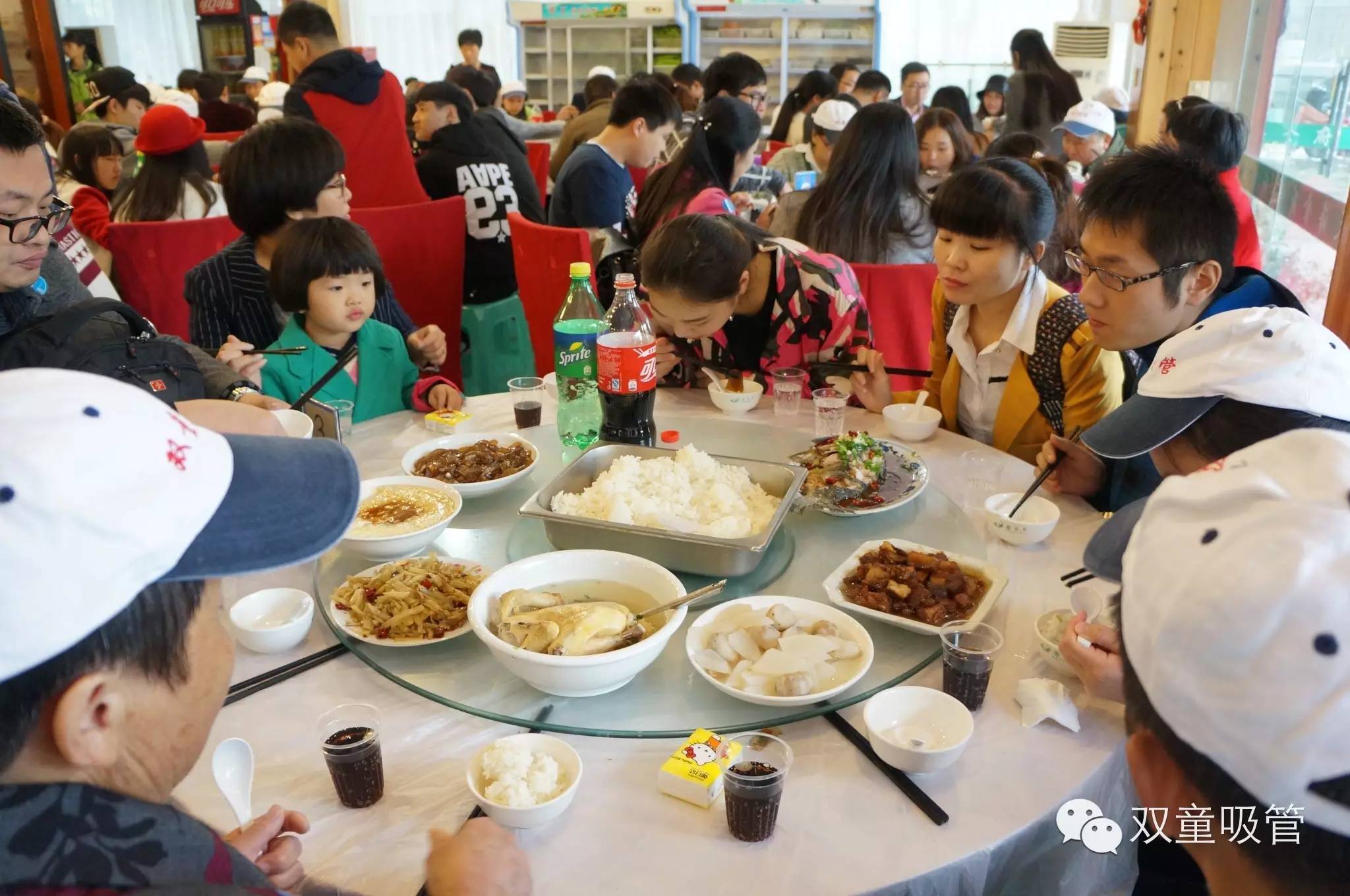 雖然時(shí)間還早,由于下午還要去往神仙居拜訪神仙,所以我們就趕緊去填肚子啦!于是,雙童又一次承包大酒店,這景象,熱鬧的呀?。?!