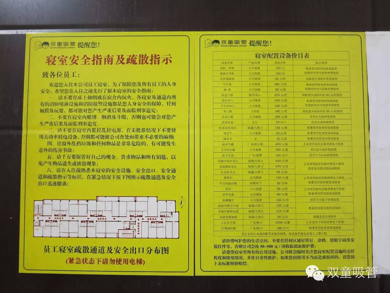 寢室安全指南及疏散指示和寢室配置設(shè)備價目表