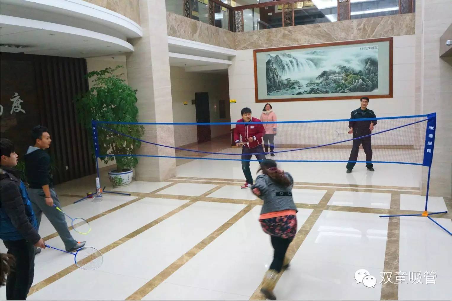近日,為驅(qū)逐冬日的寒冷,雙童的小伙伴們?cè)谛姓且粯桥e辦了一次精彩的羽毛球賽。對(duì)了,為了讓比賽更顯公平,我們專門采購(gòu)標(biāo)準(zhǔn)的羽毛球網(wǎng),相比上次五彩繽紛的吸管球網(wǎng),現(xiàn)在的球網(wǎng)可是正規(guī)多了。