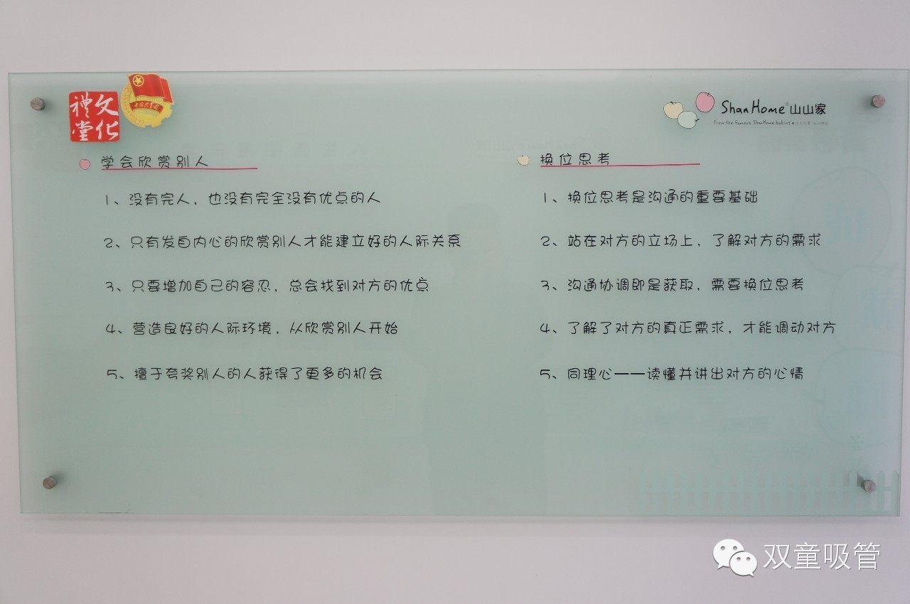 整個(gè)辦公區(qū)域的回廊上都設(shè)置了各式各樣的企業(yè)文化,山山家的禮堂文化、贊美、感恩、懺悔墻等內(nèi)容都十分有新意,下面妞就放出幾張照片讓大家大飽眼福吧!