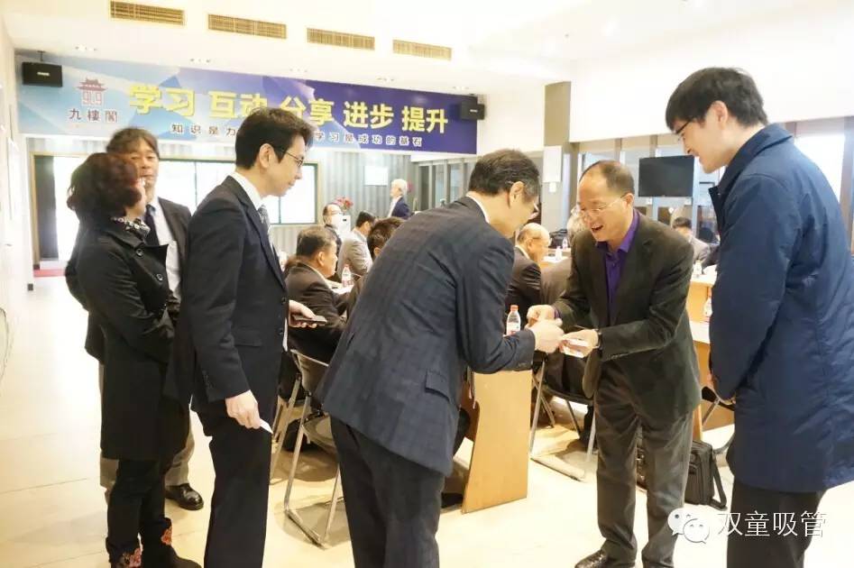 而講課前,日本團(tuán)隊(duì)的一個(gè)小細(xì)節(jié)深深地震撼了吸管妞。早就對(duì)日本人的紀(jì)律性有所耳聞,但是百聞?wù)娴牟蝗缫灰?。課前,20多位日本客人自動(dòng)排成長(zhǎng)隊(duì),主動(dòng)向當(dāng)家人樓總介紹自己并遞交名片。在這期間,后面的人都保持著安靜,聽第一個(gè)人認(rèn)真介紹自己,不催促,不打斷,不靠近。