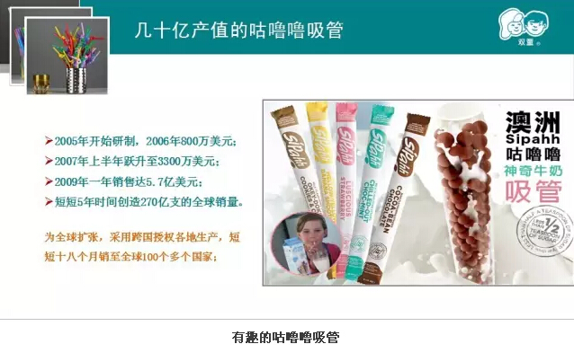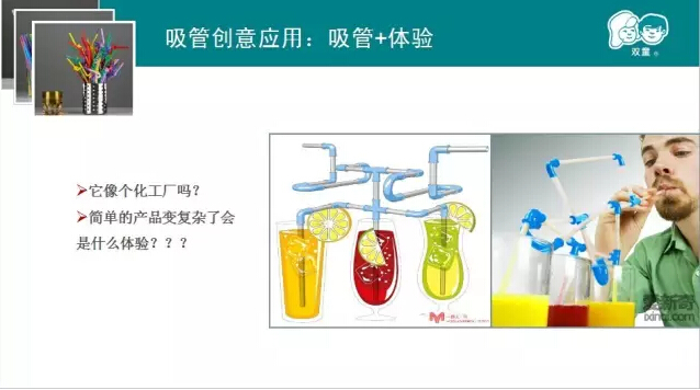 咕嚕嚕吸管?澳洲神奇吸管?這可引起了大家的好奇心。當(dāng)家人樓總圍繞這種神奇的吸管進(jìn)行案例分享。原來一根普通的吸管中間加上了巧克力牛奶咖啡等顆粒飲料,就變得完全與眾不同,深受孩子們的喜愛,還獲得不少創(chuàng)意大獎(jiǎng)呢!據(jù)說這是一位爺爺為了讓孫子喜歡喝鮮奶而發(fā)明,可見創(chuàng)新有時(shí)很簡單,它就源于我們的生活。