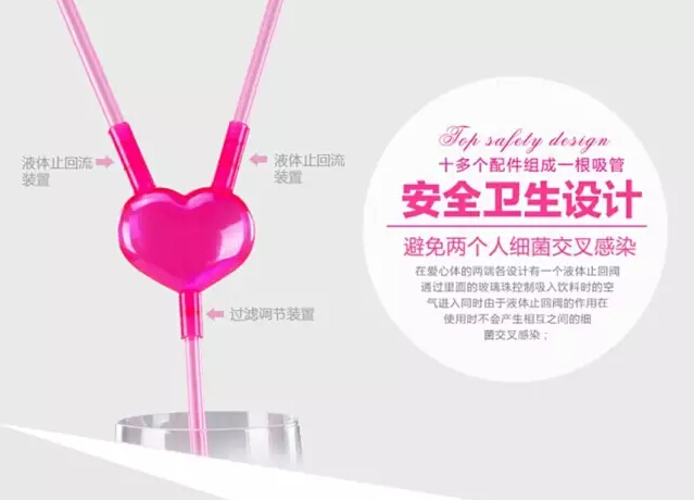 就拿愛心吸管來講吧!別看它只是一根簡單的吸管,它的身上卻有著好幾項發(fā)明專利呢!三根吸管附加一個愛心的形狀,還有液體止回流裝置、過濾調節(jié)裝置呢!在愛心吸管的兩端各設計一個液體止回閥,通過里面的玻璃珠控制吸入飲料時的空氣同時避免相互間的細菌交叉感染。真是又美觀又安全呢!