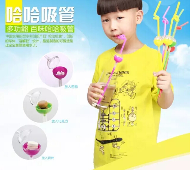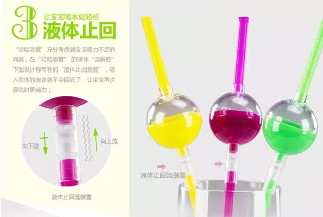 再來看看我們的哈哈吸管,創(chuàng)新的球體“溶解腔”設計,里面可放入巧克力、藥物、奶塊等東西,這樣就喝出了飲料的味道呢!液體止回的設計喝起水來更輕松了,寶寶們都愛上喝水啦!有木有!