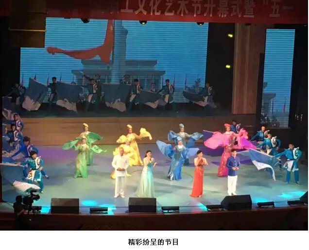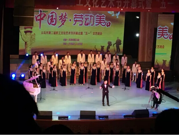當(dāng)晚的晚會(huì)現(xiàn)場(chǎng)可真是人山人海,義烏的一線勞動(dòng)者代表都參與到這個(gè)屬于“勞動(dòng)者”的晚會(huì)中,他們身著工作服,高聲合唱“咱們工人有力量”,雄厚的歌聲中傳遞出鋼一般的意志,傳遞出“勞動(dòng)最光榮”的信念。