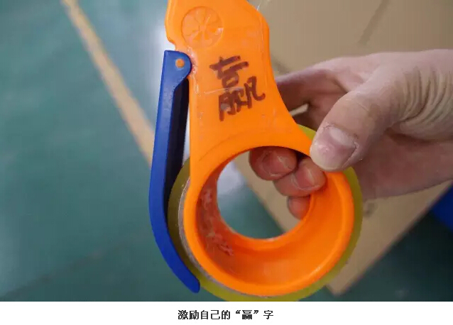 在二車間一通尋找,吸管妞才發(fā)現(xiàn)了張楠。他笑著說:“我不是在封箱,就是在去封箱的路上,不好找哦!”2013年,從西安來義烏找工作的張楠進(jìn)入雙童,在二車間從事封箱的工作。談起當(dāng)初進(jìn)雙童的時(shí)候,張楠會(huì)心一笑:“這都是緣分??!在市場(chǎng)上看到“雙童”的招聘信息,因此和雙童結(jié)緣,在此扎根。”瞧瞧下面這個(gè)可是張楠“吃飯的家伙”——封箱膠帶機(jī),上面寫著一個(gè)字:“贏”。問其意義,張楠表示這是“愛拼才會(huì)贏”的意思,他只想把自己手頭的工作做好做精,以此來激勵(lì)自己。