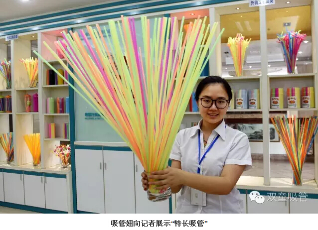 “其中,有30多種是近年開發(fā)的新產(chǎn)品。”李二橋說,陳列的各式各樣吸管,既有幾厘一支的,也有10元一支的。他拿起一款叫做“風(fēng)車吸管”的產(chǎn)品,只見吸管的中上部安裝著一個(gè)透明的球體,球體內(nèi)懸著一只小小的風(fēng)車,吮吸飲料,里面的風(fēng)車就會(huì)快速旋轉(zhuǎn)。“剛開發(fā)出來時(shí),由員工的子女進(jìn)行了試用,孩子們都把它們當(dāng)成了玩具,這是一款十分具有個(gè)性特點(diǎn)的產(chǎn)品。‘雙童吸管’類似的創(chuàng)新產(chǎn)品有40多類,總計(jì)300多種。”