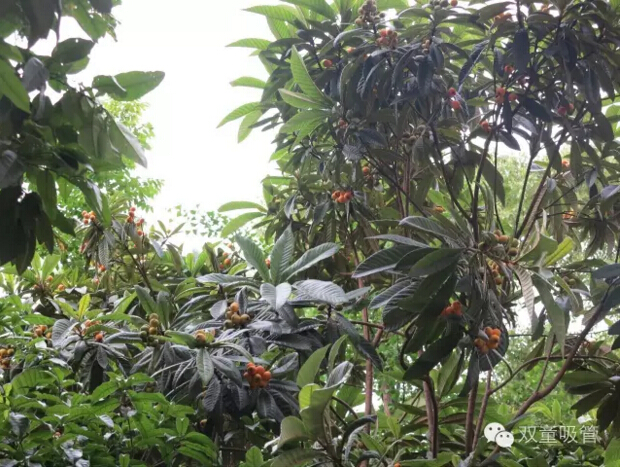 這不,前段時間的櫻桃季剛過,“雙童”的枇杷又豐收啦!瞧瞧!這幾棵枇杷樹上掛滿了黃澄澄的“小燈籠”,圓乎乎毛絨絨的果實,透著誘人的成熟色彩,一簇簇的壓彎了枝頭!誘人極了!