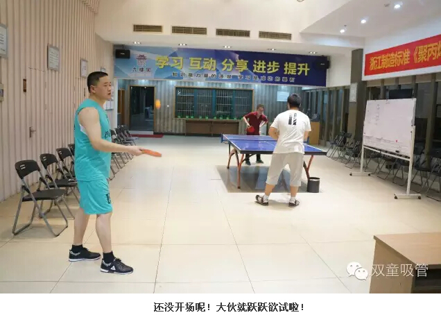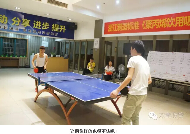 精彩的小游戲后,比賽現(xiàn)場(chǎng)火熱極了。瞧!正手小三角、反手加轉(zhuǎn)弧球、反手前沖弧球、挑打、搓球,一系列乒乓球技藝中的手上花活兒,在乒乓球比賽中,都可得見(jiàn)蹤影!在場(chǎng)的觀眾們連連叫好!咱們“雙童”吸管的員工們真是臥虎藏龍啊!不愧是中國(guó)的國(guó)球,這普及率當(dāng)真是全民的!