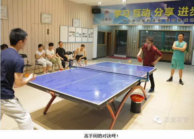 5月27日晚七點(diǎn)半,一場(chǎng)精彩的乒乓球賽在“雙童”九樓閣舉行!為了不受外面風(fēng)力的阻擾,男同胞們就把球桌搬到了室內(nèi),一下就占據(jù)了九樓閣的的正中心,成為全場(chǎng)的焦點(diǎn)。這不,還沒(méi)開(kāi)始呢!乒乓球迷們就忍不住先練練手啦!下面吸管妞就帶大家看看現(xiàn)場(chǎng)的盛況吧!