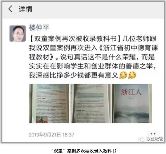 其中南京商學(xué)院研究案例《年輕的你到底要什么?——雙童吸管新生代員工培養(yǎng)探索之路》、浙江工業(yè)大學(xué)研究案例《以小博大,一根吸管的藍海之旅》兩件研究案例更是分別榮獲2016年度和2017年度百優(yōu)案例!截至目前,以“雙童”為主題的案例進入到國家案例庫的數(shù)量就有十多件。