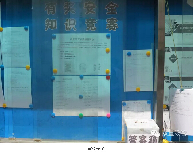 為了讓大家增強(qiáng)安全意識(shí),防患于未然,我們的文宣科分別用黑板報(bào)、軟木板、員工活動(dòng)等形式,用通俗易懂的語(yǔ)言,介紹了有關(guān)于企業(yè)消防安全、企業(yè)生產(chǎn)安全等一系列基本的安全小常識(shí),大大提高了雙童員工對(duì)于安全問(wèn)題的認(rèn)知!