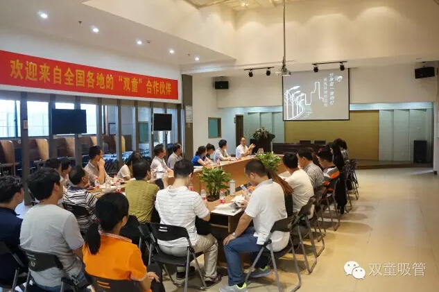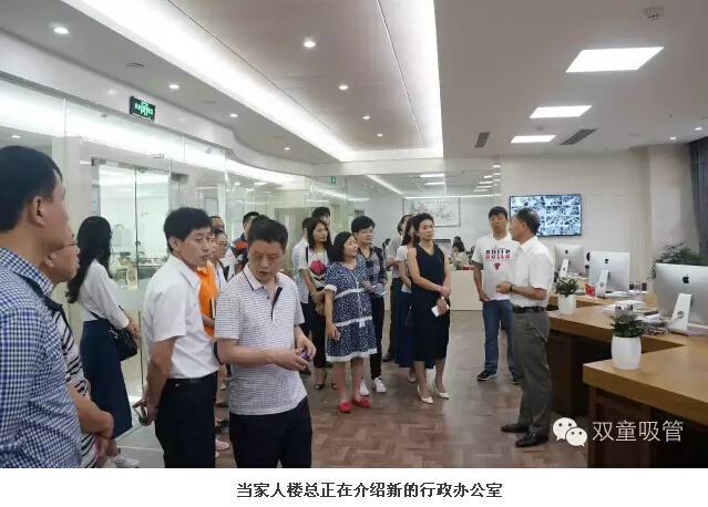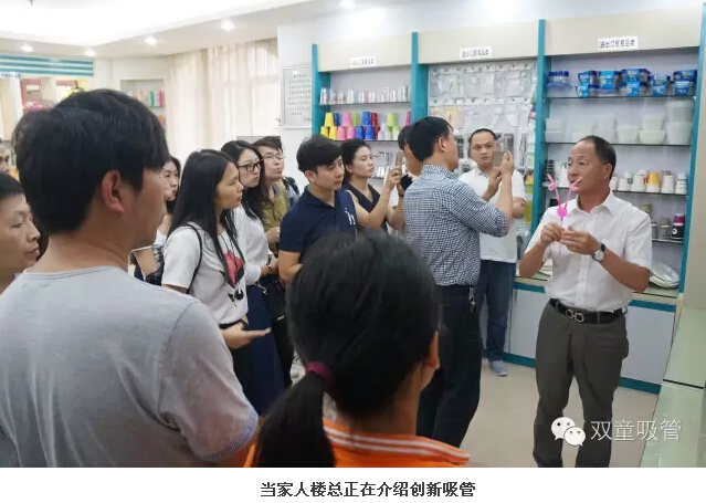 一到“雙童”,大家就參觀起了行政辦公室和吸管樣品房,當家人樓總介紹了一系列他們從沒見過的創(chuàng)新吸管,讓他們驚訝的是,原來一根小小的吸管也可以有這么多的功能可以開發(fā)。