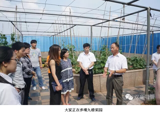 接下來,大家又參觀了中水回用池、雨水收集池、員工宿舍、九樓菜園等“著名景點”,對“雙童”的經(jīng)營管理、員工關(guān)懷、文化建設(shè)等方面,精英們?nèi)滩蛔↑c了個大大的贊!