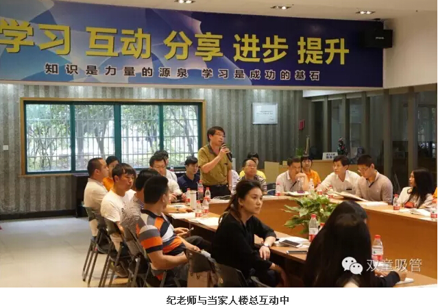 參觀完畢后,大家在九樓閣開了一個小型的“學習會”。這不,一開場,管理精英們和樓總就進行了積極的互動,從企業(yè)精細化管理的各個方面向樓總發(fā)問,當家人樓總也是拿出各類資料為大家進行了詳細的解答。