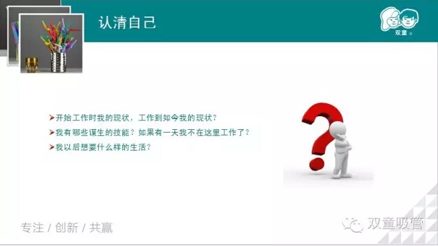 沒有一種工作是錢多,事少,離家近的,我們只有提升自我,做好自己的工作才能獲得最高的回報(bào),那我們到底該怎么做呢?接下來(lái)妞就放上幾張PPT和大家共享吧!