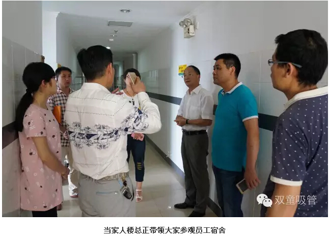 參觀員工寢室時(shí),當(dāng)家人樓總向大家介紹我們的寢室。每個(gè)房間都配有干凈整潔的洗手間、寬敞明亮的洗衣陽(yáng)臺(tái),并配有各種家具,每個(gè)房間安裝有空調(diào),24小時(shí)供應(yīng)熱水洗澡和純凈飲用系統(tǒng)。同時(shí),每層樓配備有清潔工專門負(fù)責(zé)衛(wèi)生清潔服務(wù)。