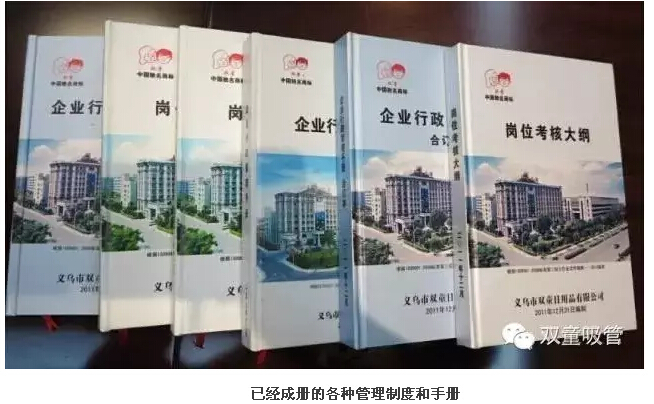 當(dāng)家人樓總答:管理要依靠制度規(guī)范支撐。對(duì)此,公司組織人員編寫(xiě)了兩百多頁(yè)的崗位考核大綱,從組裝、包裝、銷售甚至到廠里的消防隊(duì),每個(gè)崗位都有著不下5條的考核條例,連掃帚如何擺放都有明確的規(guī)定。而行政人員也會(huì)有《行政管理大綱》,不同崗位的人會(huì)拿到不同的版本進(jìn)行學(xué)習(xí)培訓(xùn)。所以外界經(jīng)常戲稱“雙童”260多頁(yè)文件管一把掃帚。