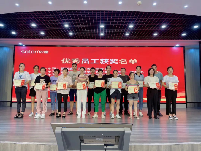 大會的第一項議程就是優(yōu)秀員工表彰,在第二季度中共23名一線員工脫穎而出,他們之中,有剛?cè)霃S工作時間不長的新人、有在一線耕耘良久的“老兵”、還有后勤普通的食堂幫工……但他們有一個共同的標(biāo)簽:勤勤懇懇的“雙童”人!