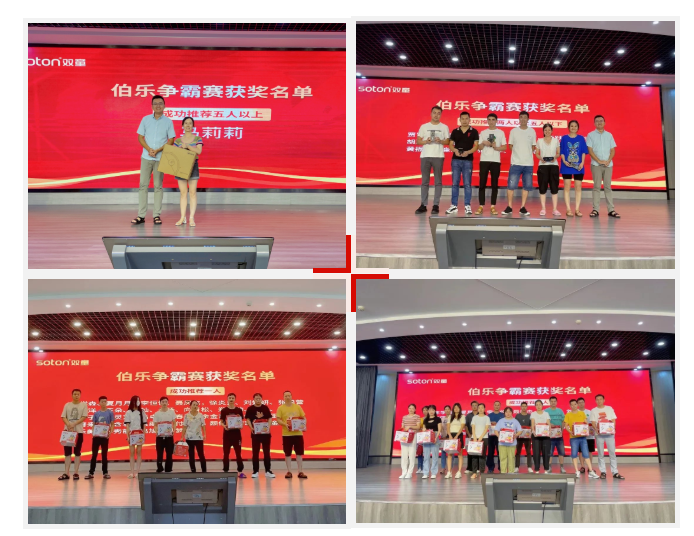 優(yōu)秀員工表彰結(jié)束后,又迎來了“伯樂爭霸賽”的頒獎環(huán)節(jié)!都說一家企業(yè)對待員工到底好不好,就看員工愿不愿意把親朋好友介紹過來。今年的2月份,“雙童”再次啟動了伯樂爭霸賽活動,鼓勵大家“以老帶新”,讓更多的小伙伴們加入到“雙童”的大家庭中。有不少的“伯樂”都紛紛參與到活動之中,在表彰大會上,雙童”也為他們送上了精心準(zhǔn)備的大禮!