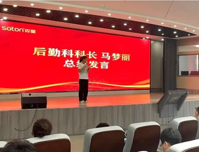 緊接著后勤科科長馬夢麗也對后勤、衛(wèi)生等工作進(jìn)行宣講,她強調(diào)大家要重視公共區(qū)域的衛(wèi)生情況,并提醒暑期員工家屬入住需要遵守廠區(qū)的規(guī)章制度,做好垃圾分類,共同維護(hù)公司環(huán)境。