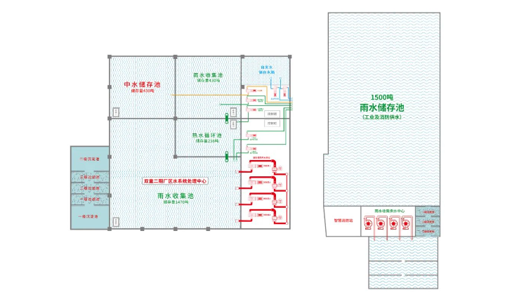 “雙童”在廠區(qū)道路、屋頂、綠化地等可以收集雨水的區(qū)域建造了一百多個(gè)雨水收集口,并用管道分別連接到各個(gè)廠區(qū)的雨水儲(chǔ)存池里,這幾個(gè)池子總量相加為4500噸!
