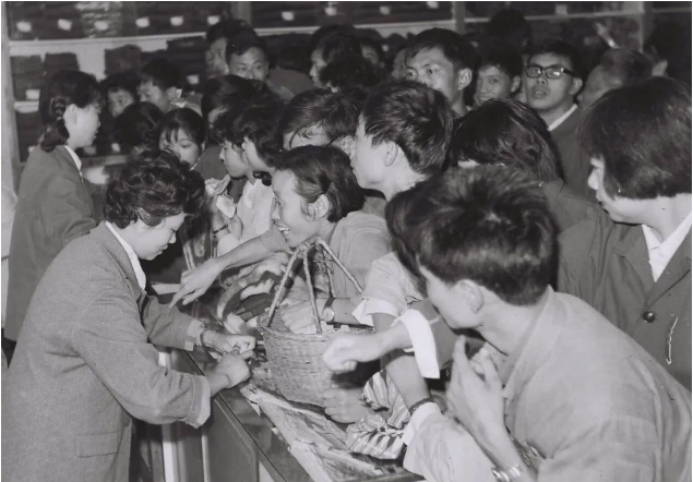 人們提著籃子上街售賣(mài)商品